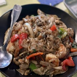 Must try the drunken noodles and mango salad! Drunken noodles are always a bit broken up but the flavor is sooo bomb even when we get it vegan without oyster sauce and with tofu. The mango salad is refreshing with the perfect amount of sweet, sour, and spicy! Order at least an hour in advance if you're picking up to-go because they are always very busy!